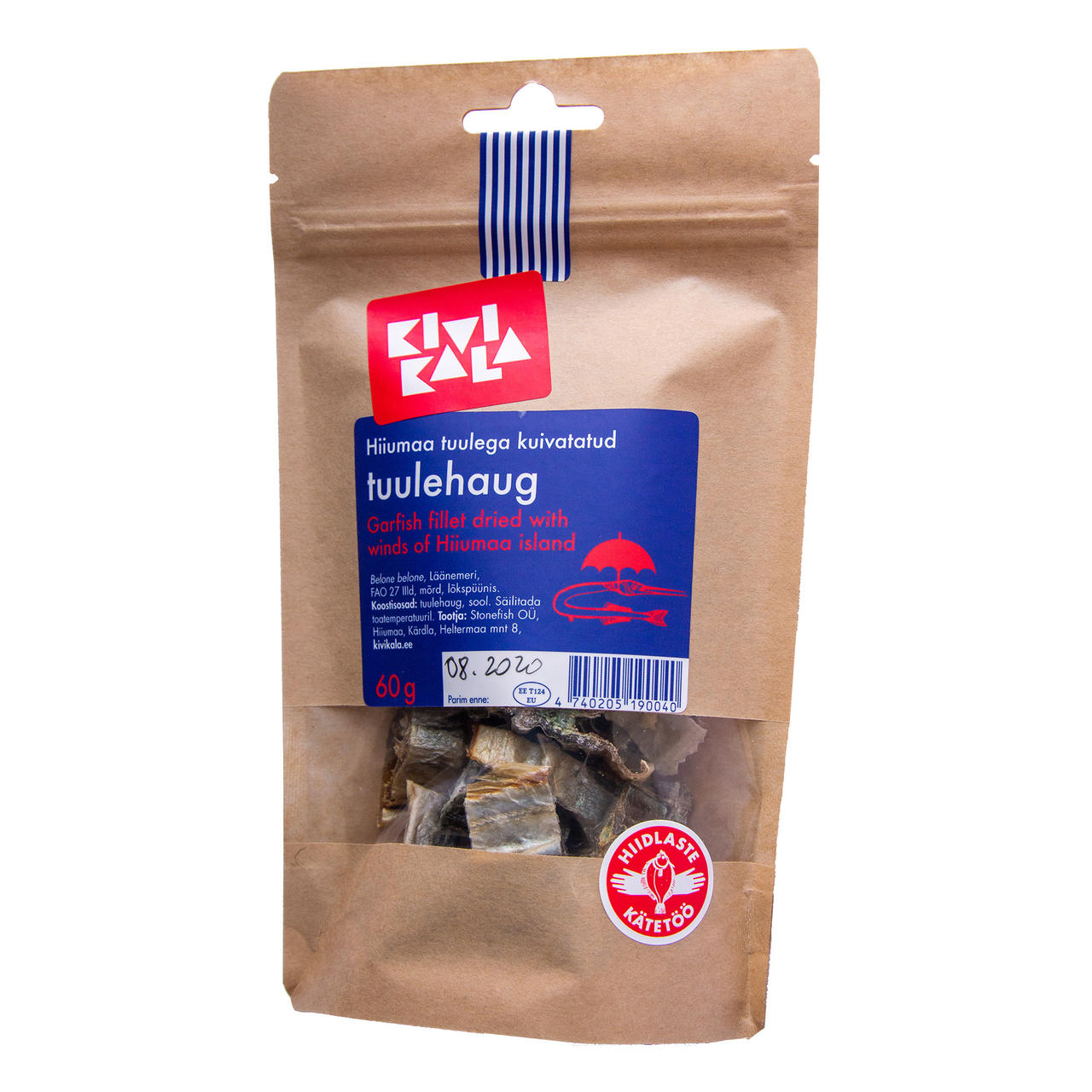 Koostisosad: tuulehaug (Belone belone), sool. Püütud Läänemerest (FAO27 IIId) mõrraga (lõkspüünis). Säilitada toatemperatuuril.